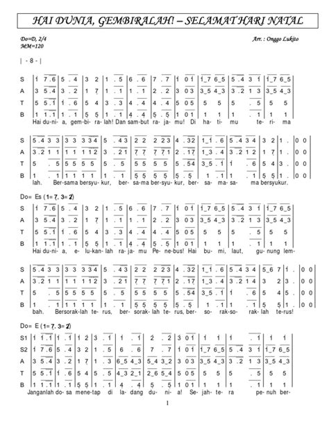 Partitur Not Angka Satb Lagu Natal
